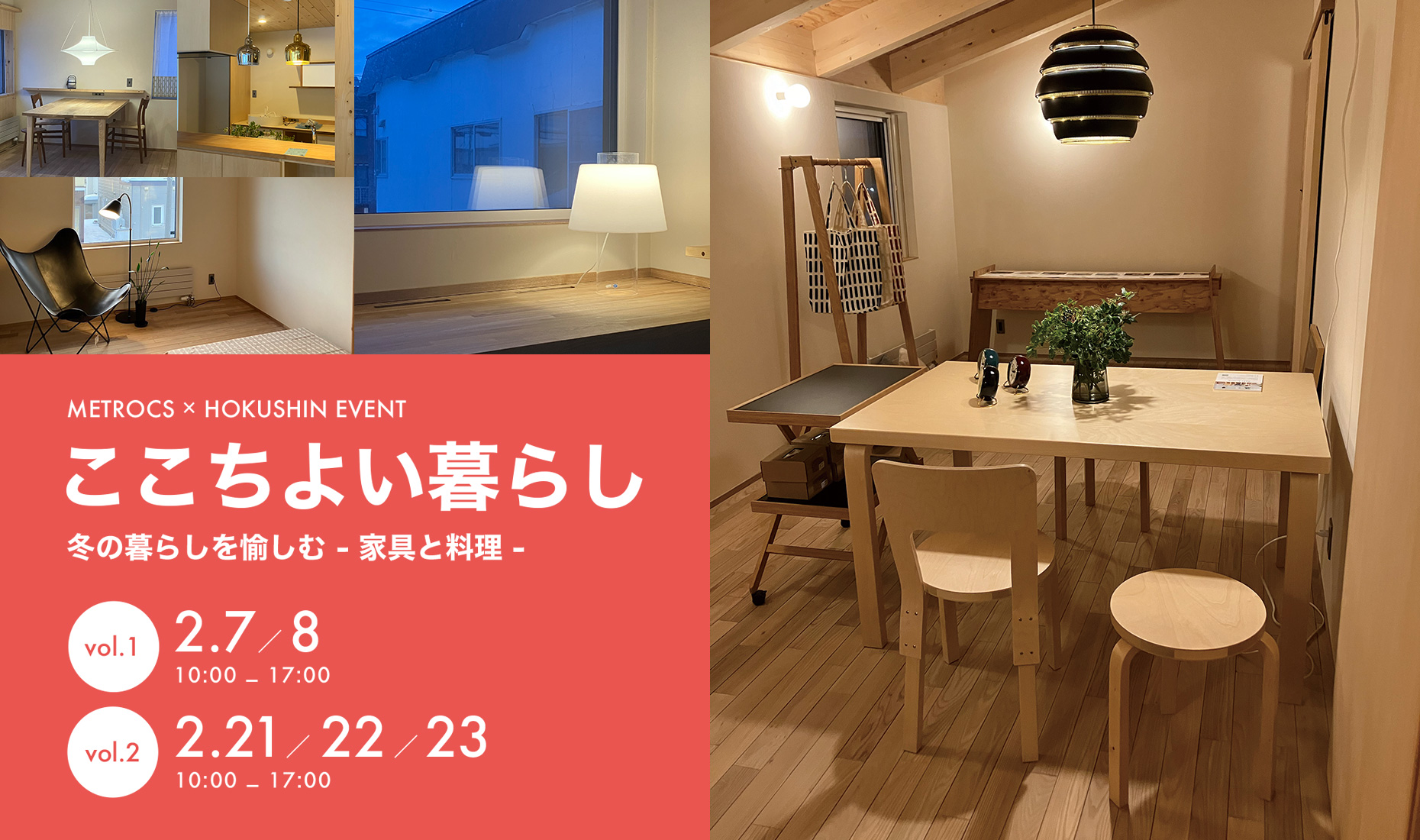 「ここちよい暮らし -冬の暮らしを愉しむ-」をテーマにメトロクス札幌は家具や照明、小物などを揃えて2月の週末に2回開催いたします。